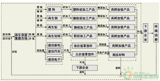 二是突出優(yōu)勢產(chǎn)業(yè)鏈,構建綠色低碳資源循環(huán)利用產(chǎn)業(yè)全鏈條。通過系統(tǒng)研究基地的工業(yè)基礎條件和區(qū)域產(chǎn)業(yè)分工與協(xié)作關系,最終確定發(fā)展以再生塑料產(chǎn)業(yè)和再生有色金屬產(chǎn)業(yè)為基地的主導產(chǎn)業(yè)鏈。經(jīng)過培育和發(fā)展,該產(chǎn)業(yè)鏈已經(jīng)形成銅材、鋁制品、不銹鋼、塑料回收加工四大板塊主導產(chǎn)業(yè),產(chǎn)品也由單一再生原材料產(chǎn)品回收向中間和終端產(chǎn)品縱深發(fā)展。同時,產(chǎn)業(yè)通過回收廢物—再生原材料—中間產(chǎn)品—深加工終端產(chǎn)品等環(huán)節(jié)延伸,既增加了附加經(jīng)濟效益,也減輕了在收集、運輸、儲存、加工過程中的污染。