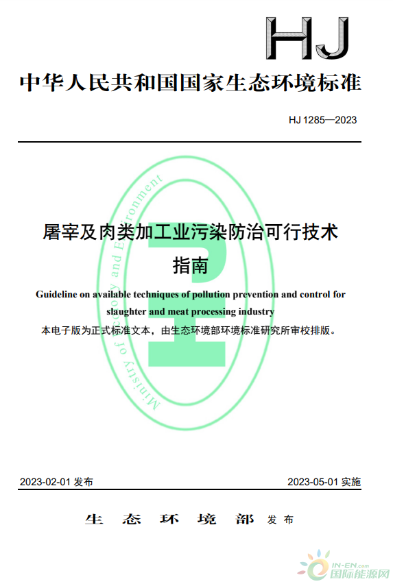 于2023年5月1日起實施,生態(tài)環(huán)境部批準(zhǔn)《屠宰及肉類加工業(yè)污染防治可行技術(shù)指南》標(biāo)準(zhǔn)為國家生態(tài)環(huán)境標(biāo)準(zhǔn)