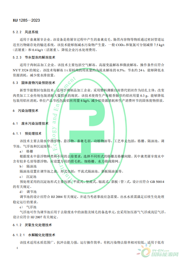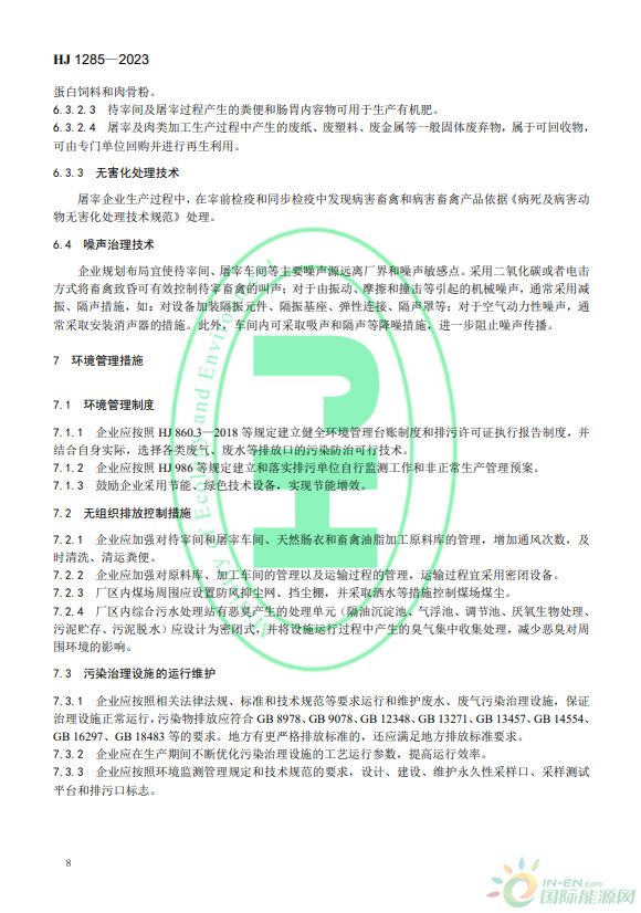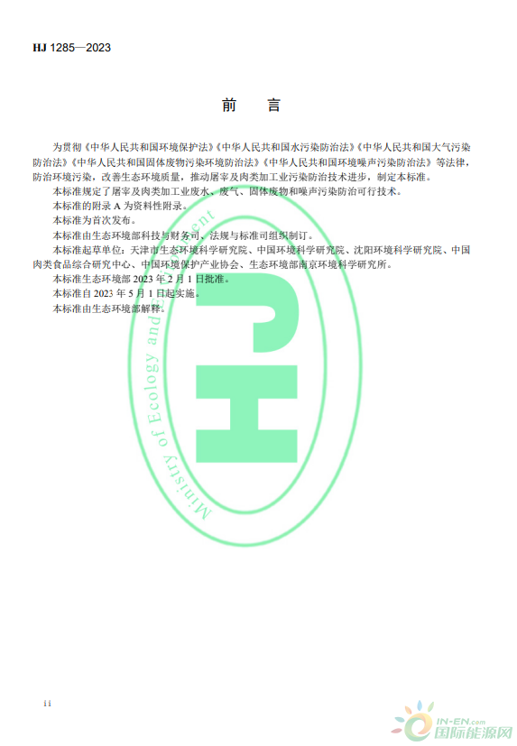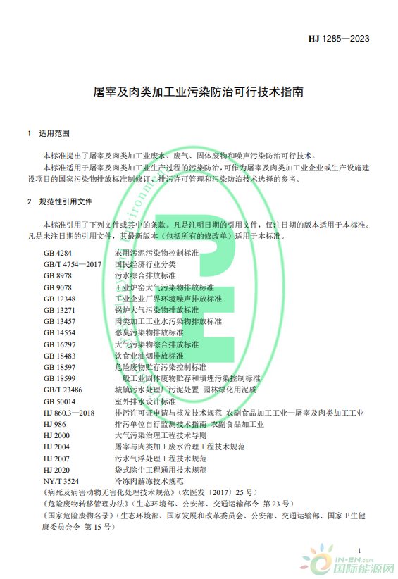 HJ 1285—2023《屠宰及肉類加工業(yè)污染防治可行技術(shù)指南》