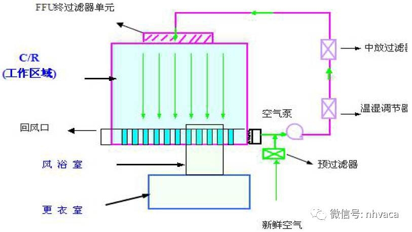 通過(guò)空調(diào)系統(tǒng)和凈化裝置把空氣進(jìn)行調(diào)濕、調(diào)溫和過(guò)濾,然后把凈化的空氣通過(guò)凈化車(chē)間的高效過(guò)濾器送入到凈化車(chē)間內(nèi),達(dá)到潔凈等級(jí)的標(biāo)準(zhǔn).