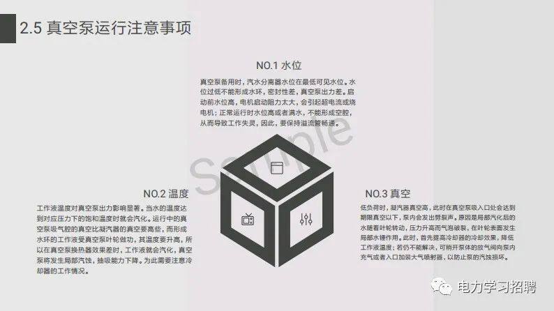 射水抽汽器具有結(jié)構(gòu)緊湊、工作可靠、制造成本低等優(yōu)點;缺點是要消耗一部分電力和水,占地面積大。離心式真空泵優(yōu)點是功耗低、耗水量少,噪音小。真空泵的缺點是:過載能力很差,當(dāng)抽吸空氣量太大時,真空泵的工作惡化,真空破壞。這對真空嚴(yán)密性較差的大機(jī)組來說是一個威脅。有些電廠考慮起動時用射水抽汽器,正常運行時用真空泵來維持凝汽器真空。