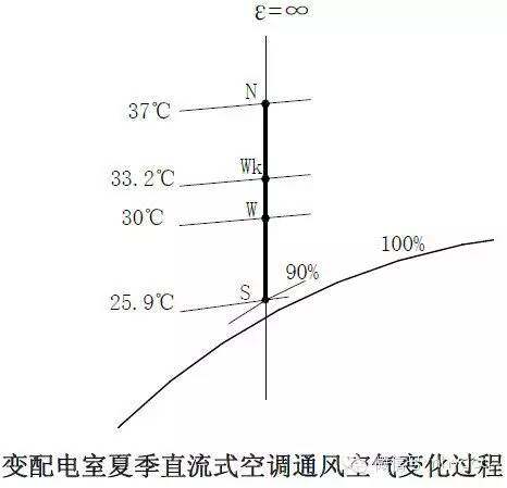(1)變配電室基本無散濕量,熱濕比ε=∞。