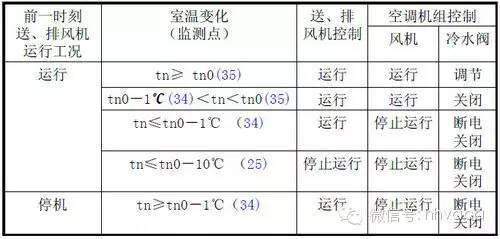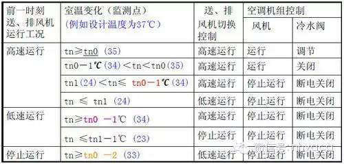 ? 優(yōu)先使用通風(fēng)以節(jié)省冷機(jī)制冷量:通風(fēng)機(jī)高速運(yùn)行時(shí)室溫仍然過高才打開空調(diào)機(jī)組冷水閥并維持室內(nèi)溫度不高于設(shè)計(jì)溫度。