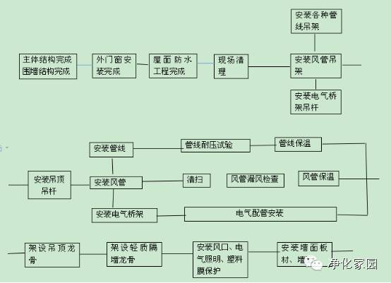 2. 1. 2根據(jù)在中外合資和引進(jìn)工程中的施工經(jīng)驗(yàn),施工順序非常重要,如果違反科學(xué)的順序,不合理地超前施工,將帶來(lái)嚴(yán)重的后果。規(guī)范總結(jié)的施工順序如圖1所示。