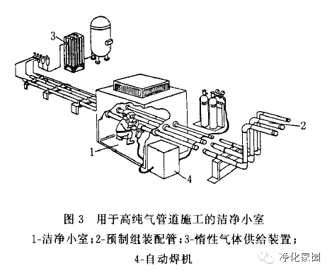 ③管道預(yù)制、分段組裝作業(yè),必須在環(huán)境清潔的條件下進(jìn)行,嚴(yán)禁在室外露天作業(yè)。圖3表示為這種施工牛剎及的潔凈小室,可供參考。