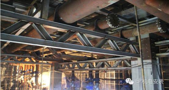 而冷凍機(jī)房主管的布置多沿樓底及柱邊懸空,多條平行排列。對管道安裝來說,當(dāng)各管段吊運(yùn)到機(jī)房該層后,除了再作水平拖運(yùn)、組對外,還需作垂直吊裝,加上高空作業(yè)對大口徑管管端組對焊接,所占施工空間很大。其弊端不只在于先占施工空間給后續(xù)工序造成困難,還在于設(shè)備先裝則易受損,如半空上管、碰撞機(jī)殼或外附儀表、雜物通過設(shè)備孔洞誤人、焊花飛濺灼傷防護(hù)不善的設(shè)備保溫層等,防不勝防。