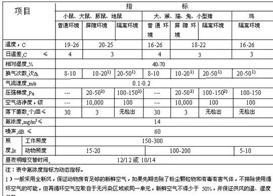 實(shí)驗(yàn)動(dòng)物繁育、生產(chǎn)設(shè)施環(huán)境指標(biāo)(靜態(tài))