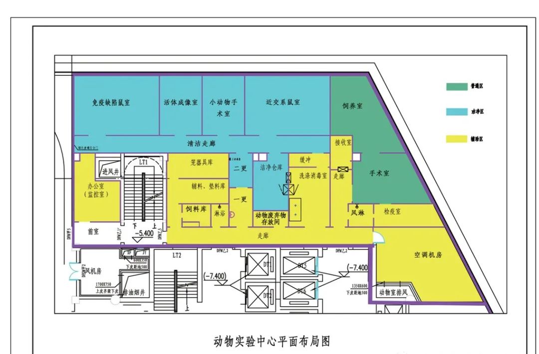 動(dòng)物實(shí)驗(yàn)室設(shè)在地下一層,建筑面積500m2,分為實(shí)驗(yàn)動(dòng)物屏障實(shí)驗(yàn)區(qū)(SPF級(jí))和大動(dòng)物實(shí)驗(yàn)區(qū)以及輔助功能區(qū)、管理室等功能區(qū)域,在管理和實(shí)驗(yàn)設(shè)備方面,新動(dòng)物實(shí)驗(yàn)室設(shè)有實(shí)驗(yàn)區(qū)門(mén)禁系統(tǒng)、監(jiān)控錄像、自動(dòng)對(duì)講以及IVC、小動(dòng)物活體成像等先進(jìn)的實(shí)驗(yàn)設(shè)備。