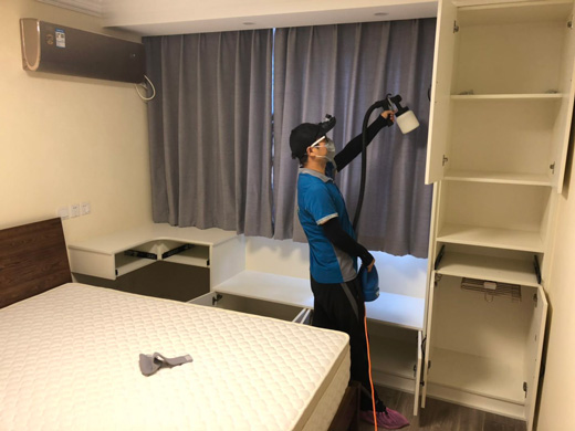 6、噴涂完成后進行全方位熏蒸,包括壁紙,地板,家具,墻面,窗簾等。