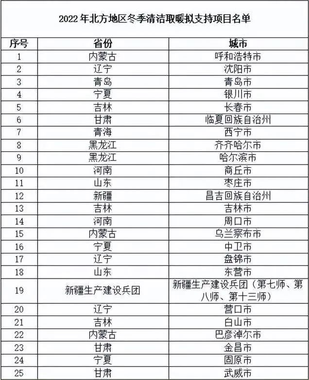 此外,相關(guān)部門下發(fā)《2022年北方地區(qū)冬季清潔取暖擬支持項目名單公示》,其中沈陽、長春、齊齊哈爾、哈爾濱、吉林、盤錦、營口、白山等入圍2022北方冬季清潔取暖擬支持名單。