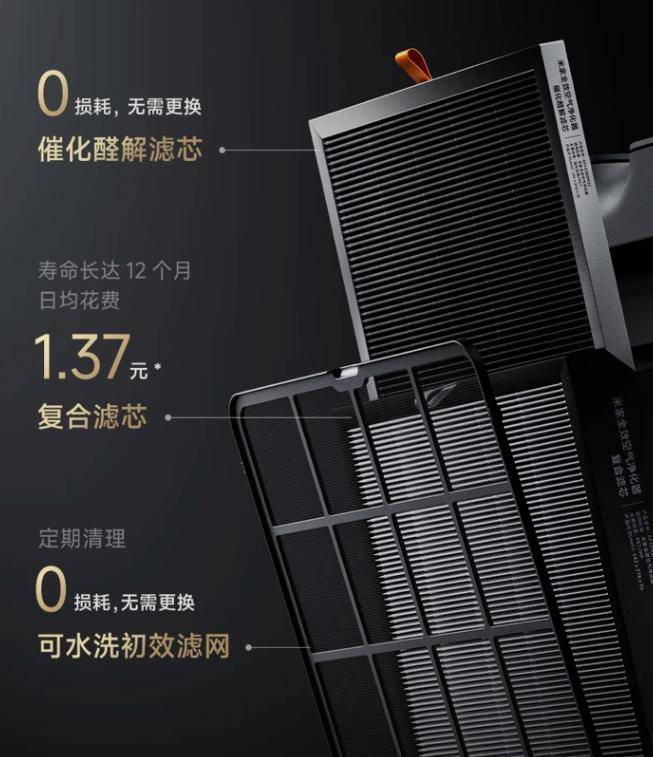 除了“醛能解”黑科技之外,米家全效空氣凈化器還采用了其他先進的設計。其中,除醛濾芯被巧妙地設計在 HEPA 濾芯和活性炭層中間,形成了“新式三明治結(jié)構(gòu)”。這一設計不僅可以催化分解甲醛,還可以催化分解臭氧和乙酸,有效延長活性炭濾芯的壽命。用戶更換濾芯時,只需去掉外層套裝,將“醛能解”濾芯插入新的濾芯套裝即可。