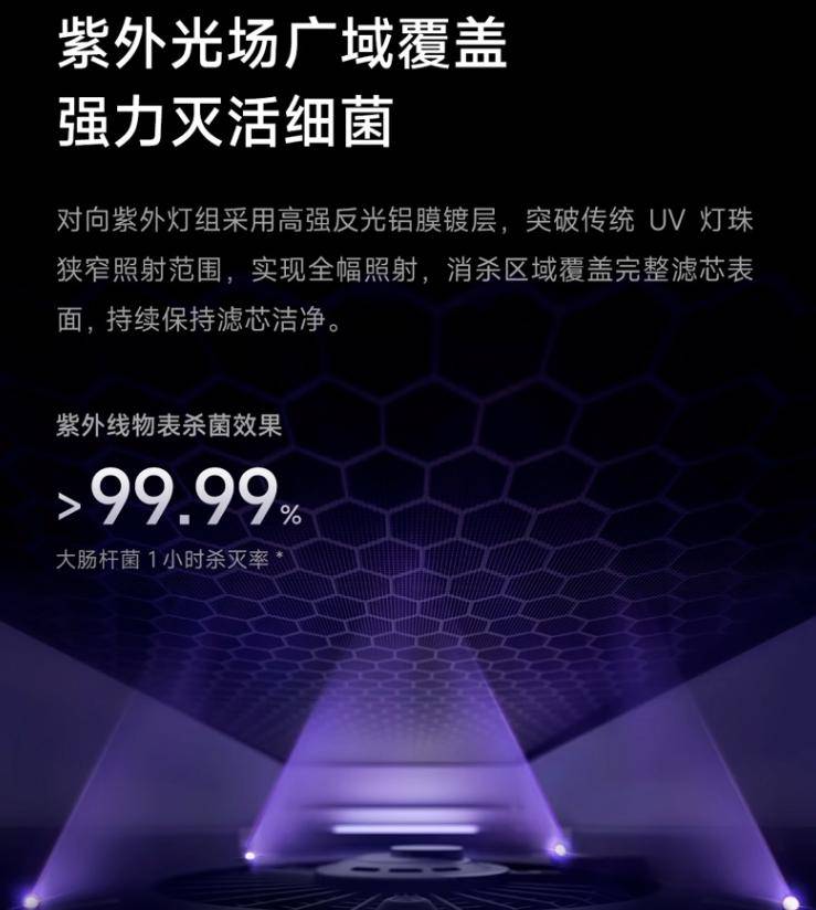 最后,為了更好地提升殺菌消毒的性能,米家全效空氣凈化器還搭載了自研的 Infinity-UV 全幅光幕技術(shù)。這項技術(shù)使用 4 盞 UV 大燈和高強反光鋁膜鍍層,突破了傳統(tǒng) UV 燈珠的狹窄照射范圍,實現(xiàn)了全幅照射。這使得消殺區(qū)域可以覆蓋整個濾芯表面,保持濾芯的潔凈,多種病菌除菌率達到 99.99% 以上。這些先進的設計和技術(shù)都使得米家全效空氣凈化器成為了一款性能優(yōu)秀、功能齊全的空氣凈化器。