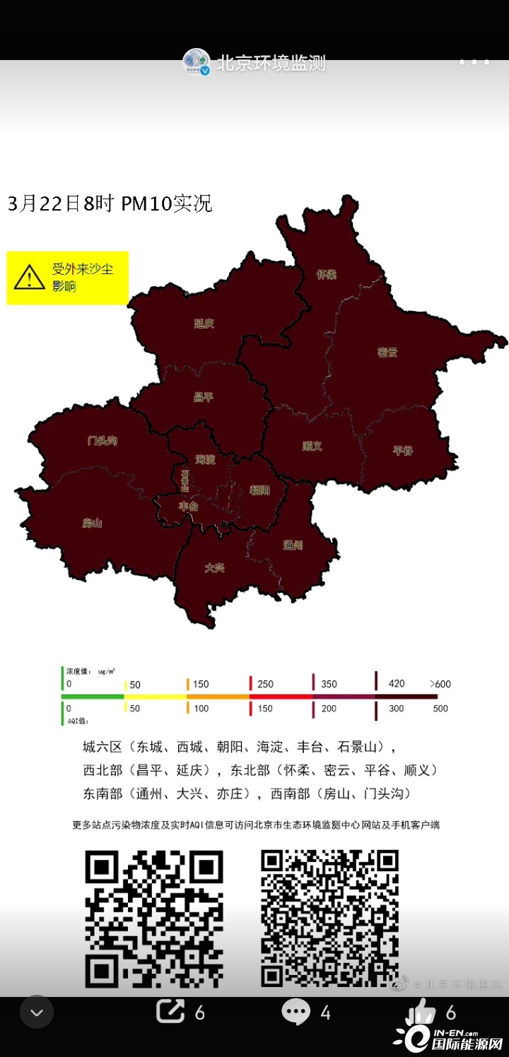 3月22日8時(shí)PM10實(shí)況。圖/北京市環(huán)境監(jiān)測(cè)中心