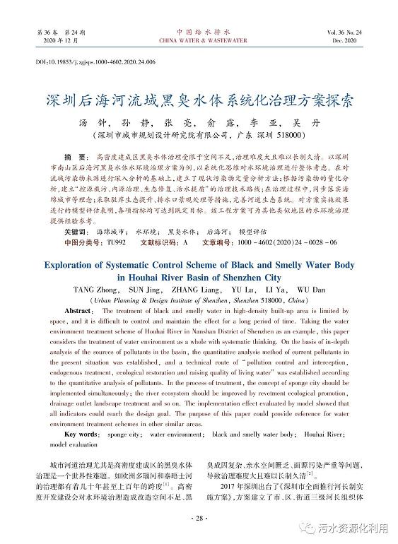 深圳后海河流域黑臭水體系統(tǒng)化治理方案探索