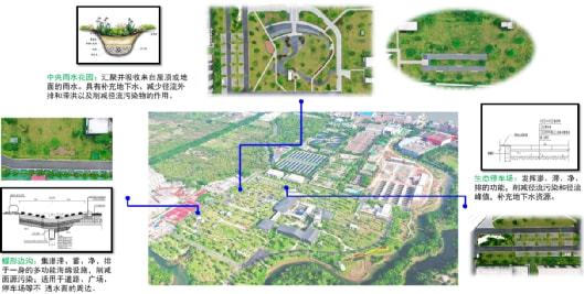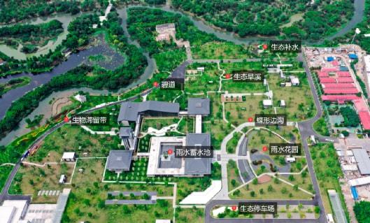 區(qū)參照海綿城市理念對(duì)雨水徑流量進(jìn)行控制,通過下凹式綠地、雨水花園、植草溝、綠色屋頂和透水鋪裝等影響開發(fā)措施。用生態(tài)的方式,盡可能降低城市雨洪風(fēng)險(xiǎn),用低維護(hù)的后期管理實(shí)現(xiàn)新時(shí)代污水處理廠環(huán)境的可持續(xù)發(fā)展,展現(xiàn)全生命周期的景致變化與美感。