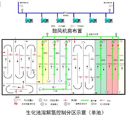 三期生化池曝氣系統(tǒng)采用精確曝氣控制系統(tǒng)技術(shù),獲得更佳的出水水質(zhì)、更穩(wěn)定的溶解氧控制,進(jìn)一步實(shí)現(xiàn)污水廠節(jié)能運(yùn)行。
