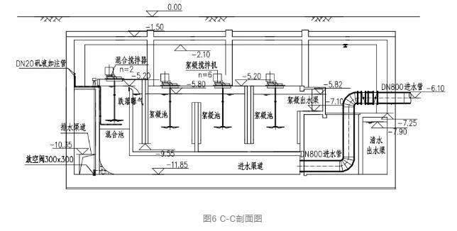 (3)有限地下空間條件下,工程設(shè)計(jì)必須要創(chuàng)新工藝組合和巧妙綜合布置,實(shí)現(xiàn)多種處理工藝過程融合,以及構(gòu)筑物豎向空間上下疊合及單元布置緊密組合,創(chuàng)造小空間高效能的綜合效應(yīng)。