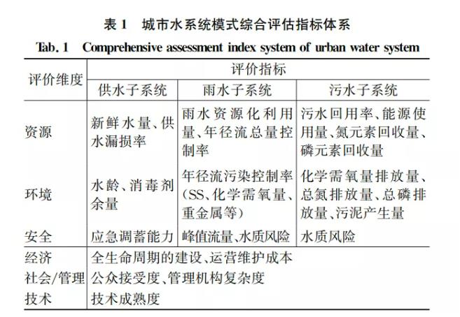 針對新區(qū)面臨的多重水約束,結(jié)合新區(qū)未來發(fā)展的定位目標(biāo),在充分認識系統(tǒng)性及維持自然水循環(huán)重要意義的基礎(chǔ)上,提出了“節(jié)水優(yōu)先、灰綠結(jié)合”雙循環(huán)結(jié)構(gòu)的新型城市水系統(tǒng)模式,其次,建立了資源-環(huán)境-安全-經(jīng)濟-社會/管理-技術(shù)六維度的綜合評估指標(biāo)體系,通過模型對子系統(tǒng)模式及過程進行模擬和綜合評估,提出了空間布局模式的優(yōu)化方案。