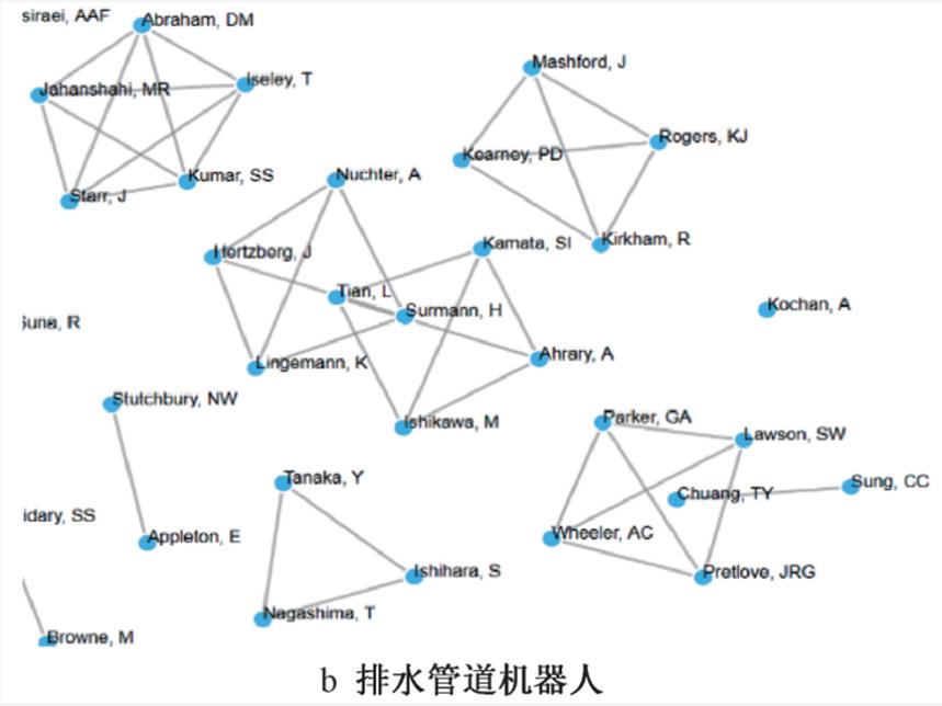圖1 管道機(jī)器人及排水管道機(jī)器人作者合作關(guān)系網(wǎng)絡(luò)
