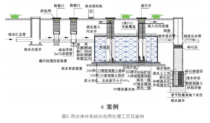 實踐中也可采取初期棄流/沉淀+生物滯留等灰-綠設(shè)施結(jié)合方式實現(xiàn)系統(tǒng)預(yù)處理目標。須強調(diào)的是,預(yù)處理并非萬能,醫(yī)院、垃圾場站等傳染性疾病、嚴重化學(xué)污染場所不得設(shè)置雨水滲井。