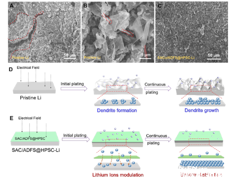 圖4.SACo/ADFS@HPSC對鋰金屬電極表面鋰離子動力學(xué)的調(diào)控機(jī)理解析