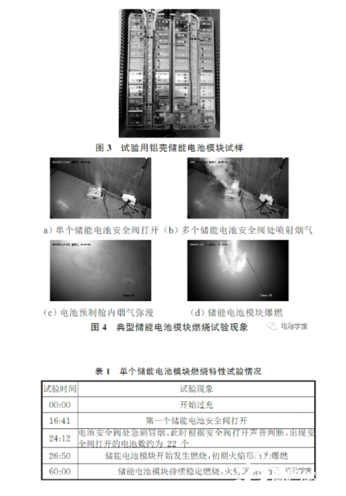 根據(jù)相關(guān)試驗現(xiàn)象分析可知,從儲能電池模塊開始充電到整個模塊發(fā)生燃燒,過程大致可以分為以下三個階段: