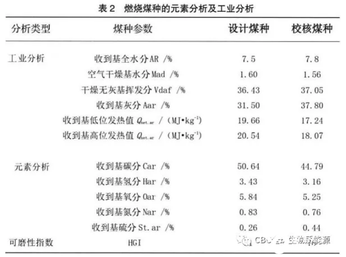 耦合燃煤發(fā)電鍋爐為東方鍋爐廠DG3000/26.15-II1型超超臨界本生直流鍋爐,該鍋爐為超超臨界參數(shù)、固態(tài)排渣、單爐膛、一次再熱、平衡通風(fēng)、露天布置、全鋼構(gòu)架、全懸吊結(jié)構(gòu)、前后墻對沖燃燒方式的II型鍋爐。實際燃燒煤種的元素分析和工業(yè)分析如下見表2。