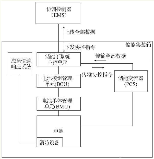 儲(chǔ)能系統(tǒng)的管理與控制框架是指如何對構(gòu)成 儲(chǔ)能子系統(tǒng)的各個(gè)部件或設(shè)備進(jìn)行管理,如何分級、如何設(shè)計(jì)數(shù)據(jù)的雙向傳遞和傳送路徑,是提高整個(gè)系統(tǒng)安全的重要方面。