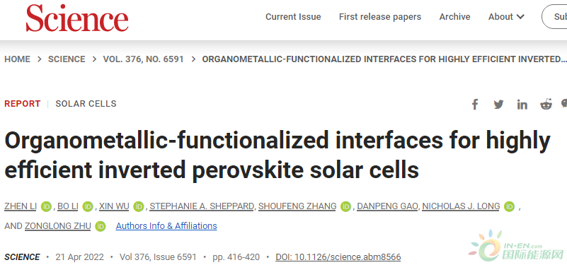 朱宗龍Science:25%!突破反式鈣鈦礦太陽能電池的極限!
